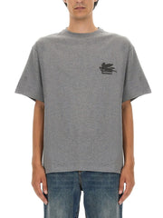 Etro T-SHIRT WITH PEGASUS EMBROIDERY - Grey / XS
