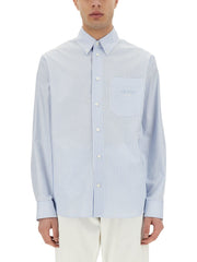 Versace STRIPED SHIRT WITH SILK PRINTED INSERT - Azure / 50